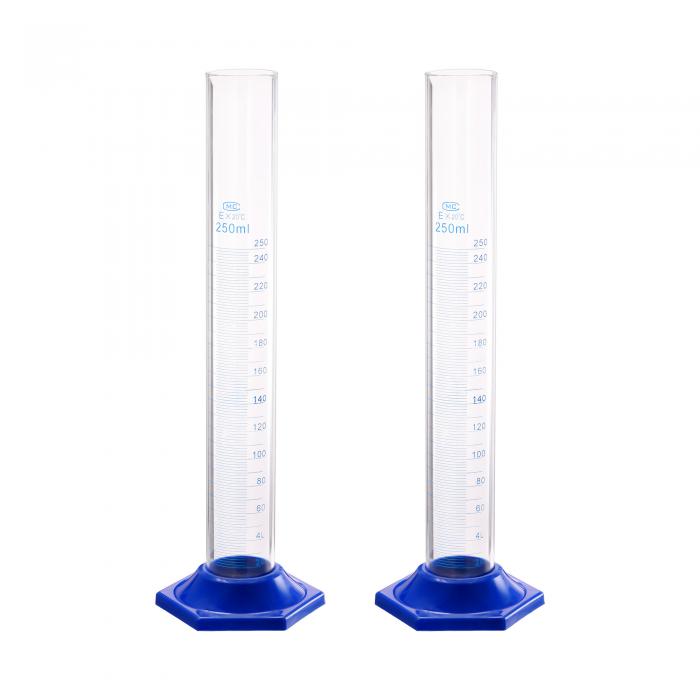 ソウテン ホウケイ酸ガラスメスシリンダー 250ml測定シリンダー 科学試験管ビーカー シングルメトリック ブルー 六角ベースフラスコ ラボホーム用 2個