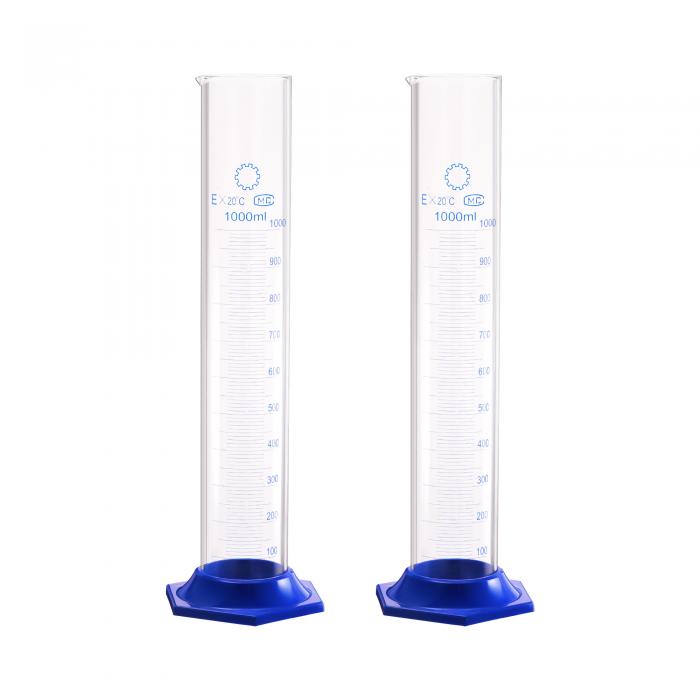 ソウテン ホウケイ酸ガラスメスシリンダー 500ml測定シリンダー 科学試験管ビーカー シングルメトリック ブルー 六角ベースフラスコ ラボホーム用