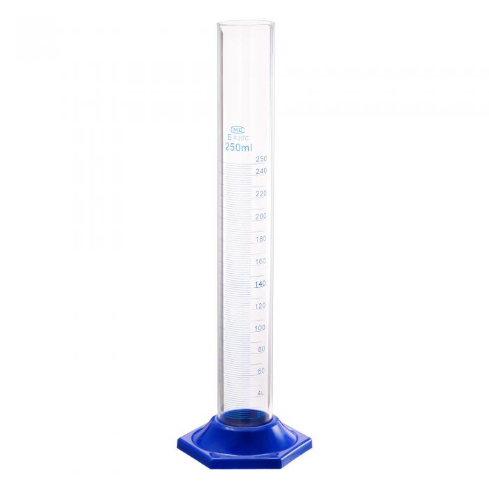ソウテン ホウケイ酸ガラスメスシリンダー 250ml測定シリンダー 科学試験管ビーカー シングルメトリック ブルー 六角ベースフラスコ ラボホーム用