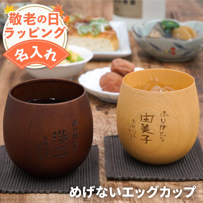 敬老の日 プレゼント グラス 木製 名入れ ロックグラス 焼酎グラス 名前入り ギフト 【 縦書き メッセージ エッグカップ 】 天然木 湯飲み 湯呑 タンブラー コーヒー フリーカップ 古希 祝い 誕生日 父 母 祖父 祖母 還暦 喜寿 傘寿 米寿 祝い 母の日 父の日 実用的