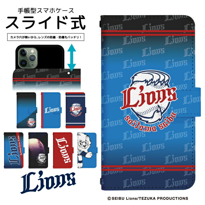 スマホケース 手帳型 全機種対応 ベルトあり 埼玉西武ライオンズ カバー 手帳 スライド式 iphone12 mini ケース アイフォン エクスペリア ギャラクシー アクオス アローズ オッポ グーグルピクセル ベイシオ アンドロイドワン 対応 dslide693
