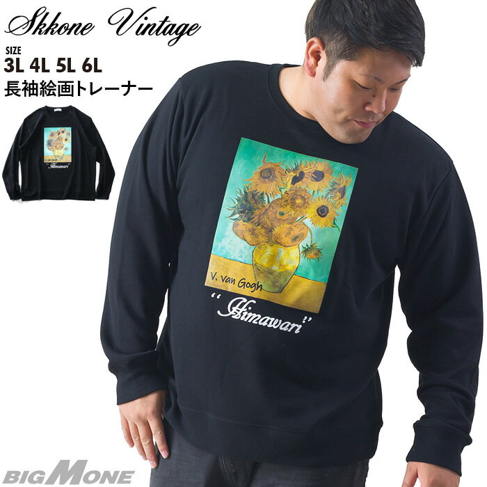 大きいサイズ メンズ SKKONE VINTAGE 長袖 絵画 トレーナー ひまわり 26384