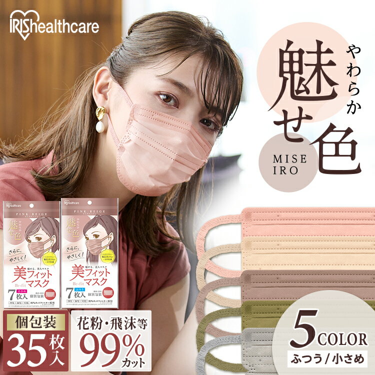 【5個セット】カラーマスク 7枚入 小さめサイズ ふつうサイズ 美フィットマスク PK−BFC7M PK−BFC7S 不織布マスク ピンクベージュ ローズグレー シルクベージュ オリーブカーキ アッシュグレー 個包装 花粉 風邪 ウィルス 【メール便】